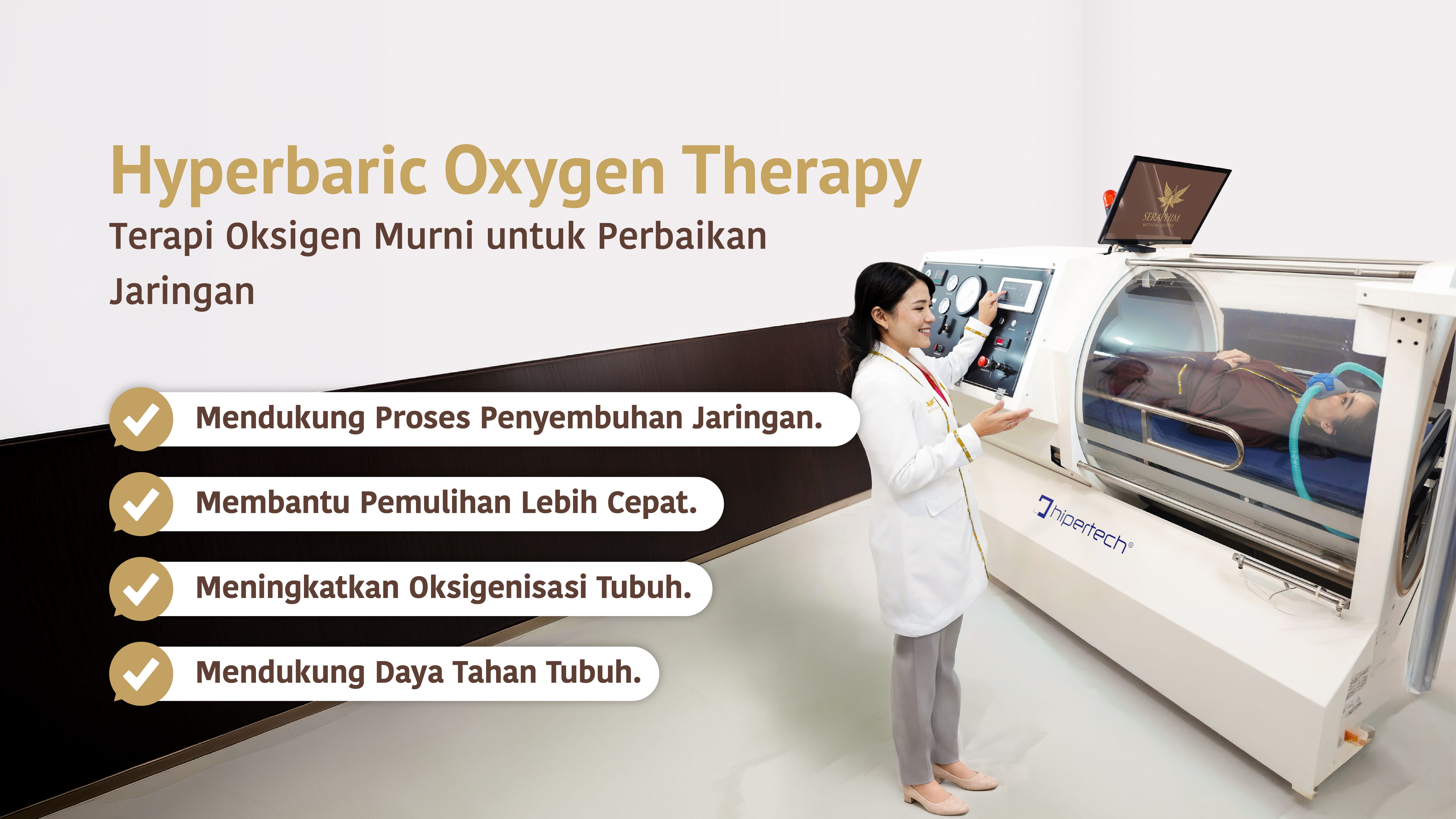 Terapi oksigen murni 100% dalam ruang bertekanan tinggi (hyperbaric chamber).