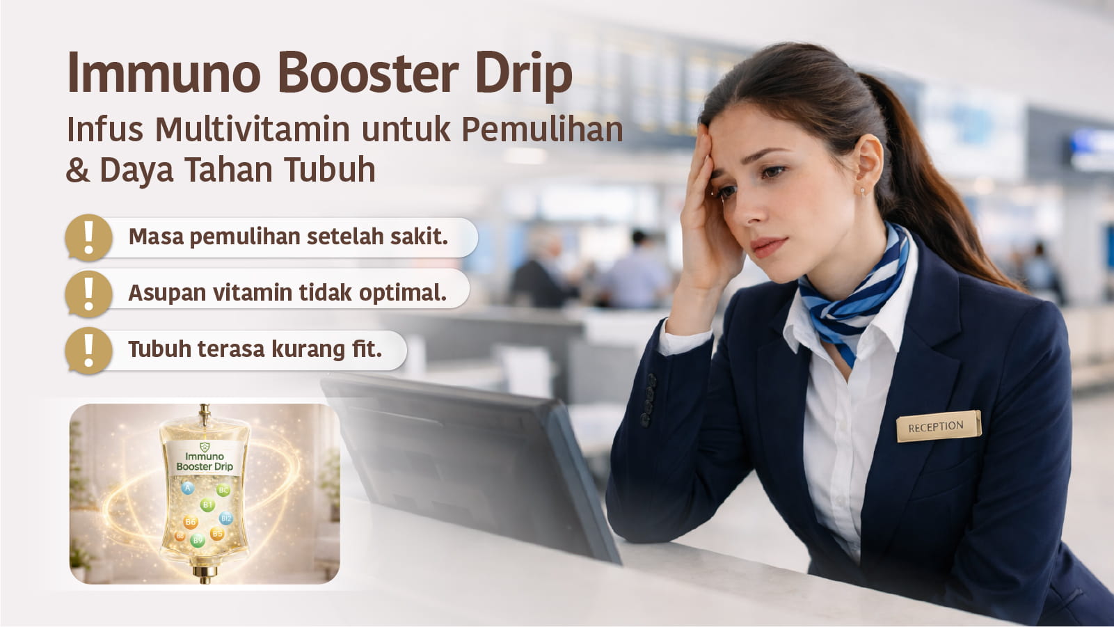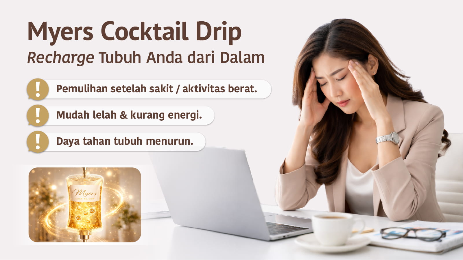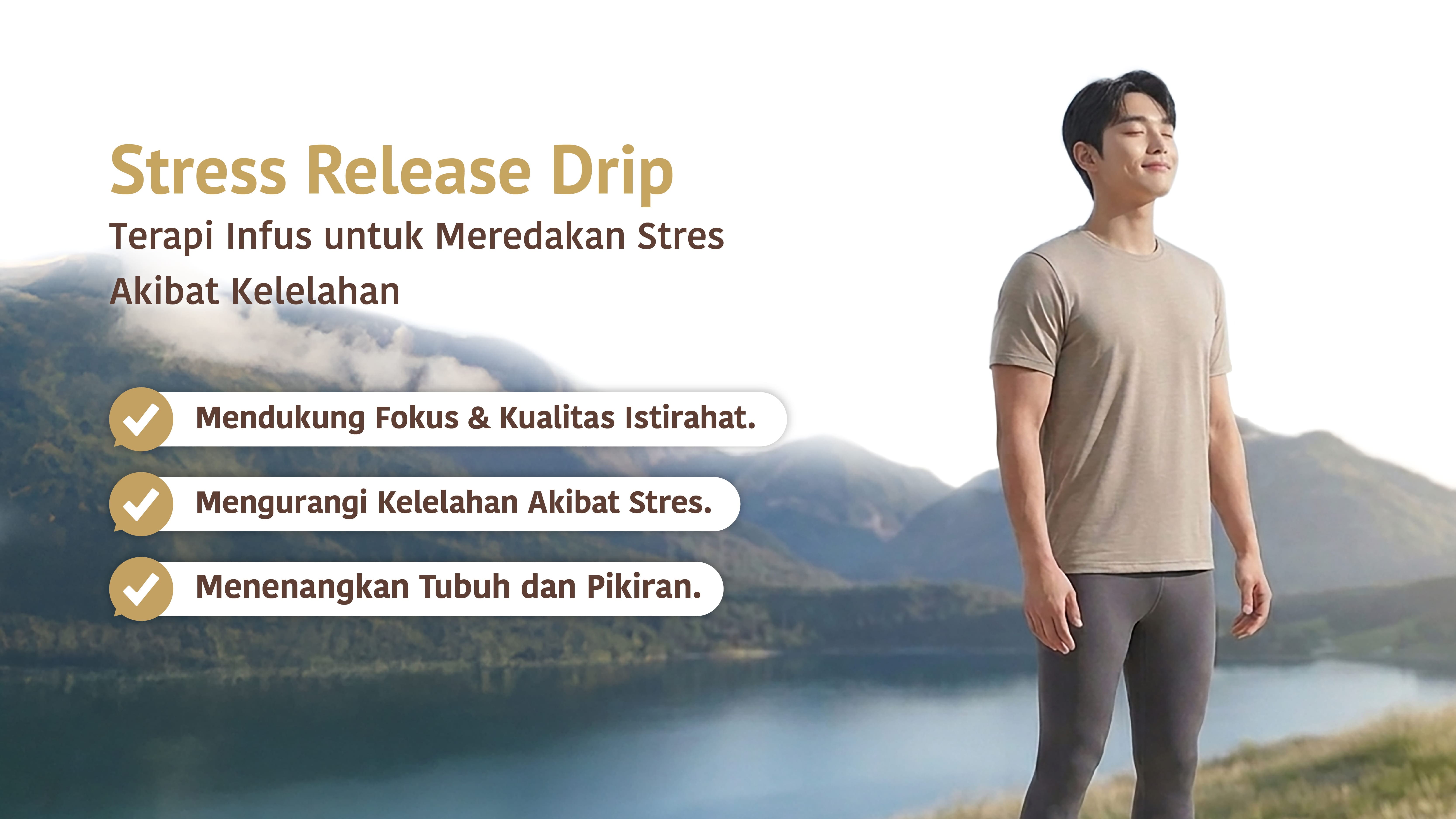 Vitamin drip untuk membantu mengatasi kelelahan akibat stres.