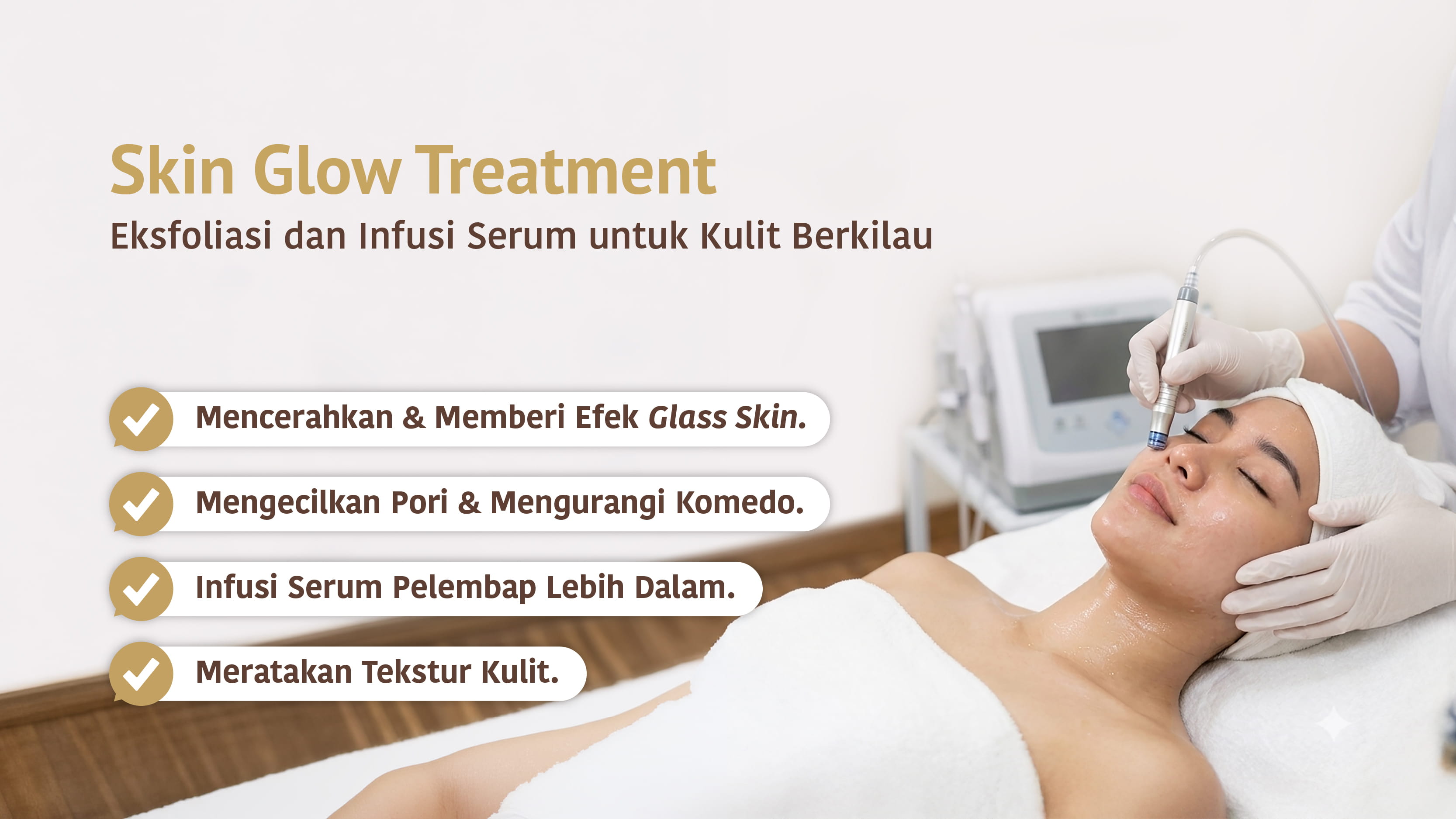 Terapi facial menggunakan teknologi silk-peel 3 in 1: ekstraksi komedo, eksfoliasi, dan infuse serum.