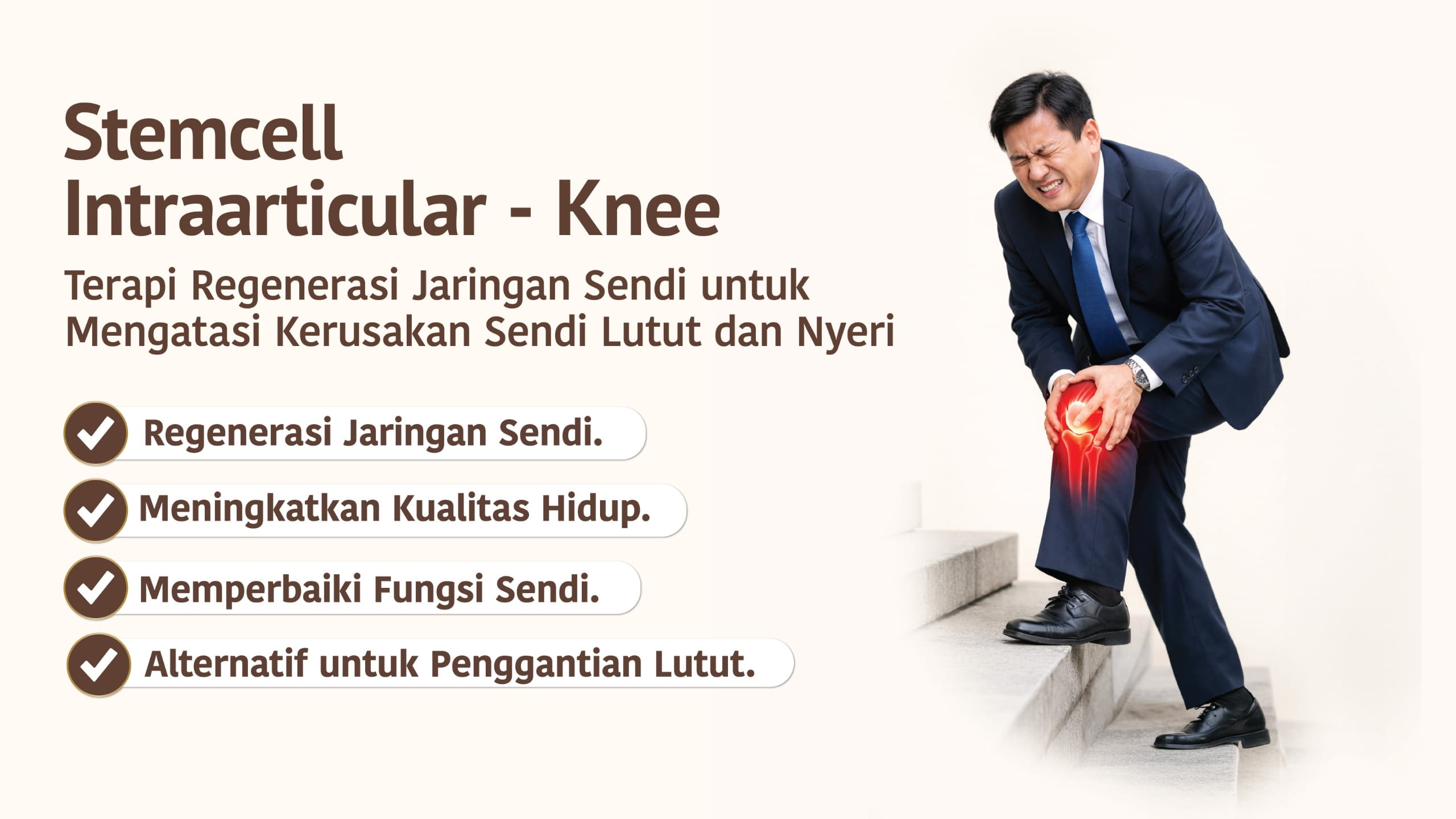 Injeksi sel punca untuk regenerasi sendi lutut dan perbaikan jaringan.